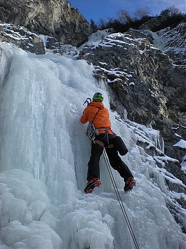 Podczas wspinu w lodzie bardzo często, nawet przy niskich temperaturach drogą płynie woda, czasami jest jej naprawdę dużo, po kilku zeszłorocznych wspinach obiecałem sobie, że już więcej bez dobrej kurtki i spodni w lodową drogę się nie wbijam.